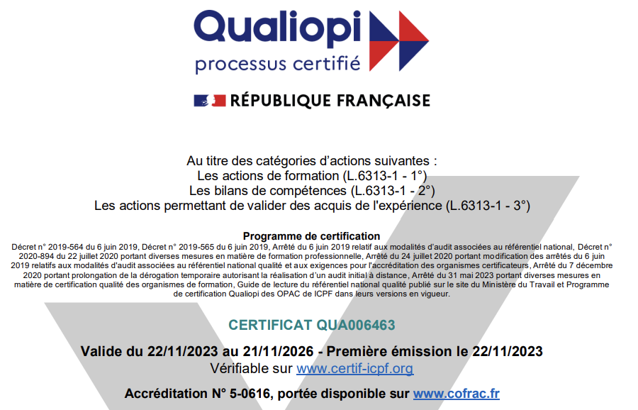 Cette solution permet de profiter de la dynamique de groupe que la solution collective fait naître tout en passant de façon individuelle le titre adapté à son parcours et à ses besoins.